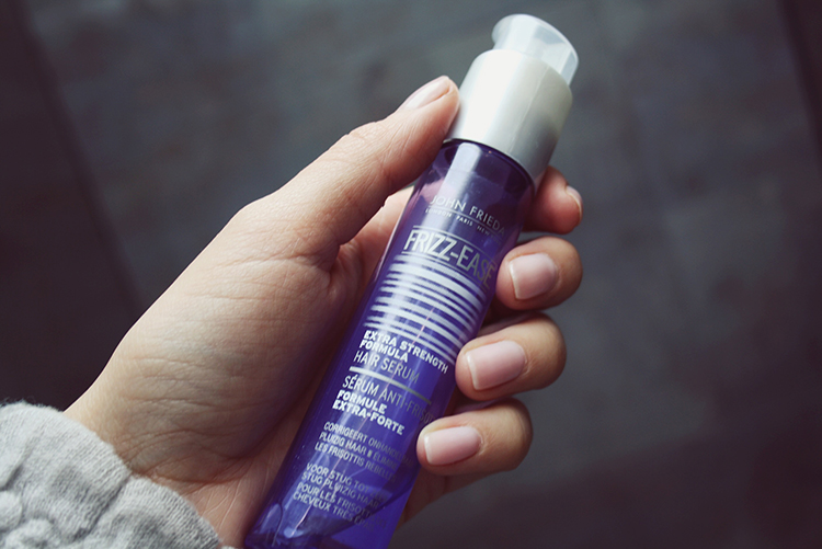 After I’ve prepped my hair, I like to put a bit of John Frieda Frizz Ease hair serum on my fingers and run it through my ends to control the frizz and prevent unwanted tangling.