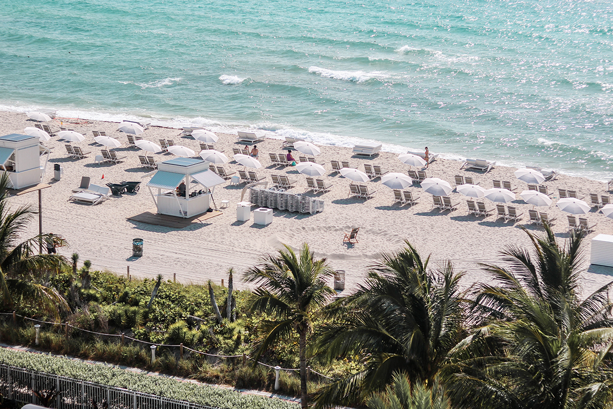 We stayed in a beautiful corner suite overlooking the beach, with a large living room, a super comfy bed, large bathroom with separate rain shower, tub and an amazing balcony to catch the lovely breeze. The floor to ceiling windows offered a spectacular view over Miami Beach. Opening the curtains every day to see the sun rise over the ocean was simply incredible!