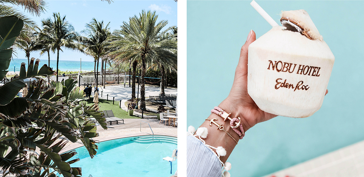 It was wonderful to be back in Miami after two years, this time for a spectacular 4 night Memorial Day weekend getaway. This is a very busy time in Miami so the hotel was quite full, but it never felt overcrowded or hectic. The property consists of two towers: the Nobu Hotel and the Eden Roc, that share the lobby, spa and restaurant. I have such fond memories of dinner at Nobu in New York that I was thrilled to learn that Nobu is now opening a small number of hotels in exclusive locations like Ibiza, London, Malibu and Miami.