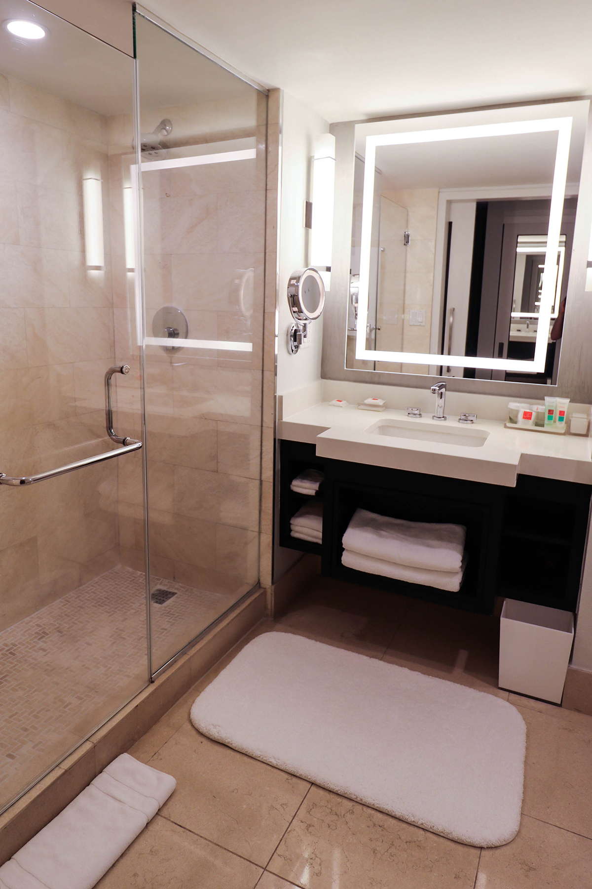 Walking into our room, it was easy to see where the recent $50 million transformation went: in every detail! The room has a modern decoration and the furniture is stylish, in rustic colors. I especially loved the large headboards of the bed. I was able to stack the many fluffy, wonderful pillows against the headboard and work, reach or watch tv for hours – if only the Florida sun wouldn’t lure me to the beach!