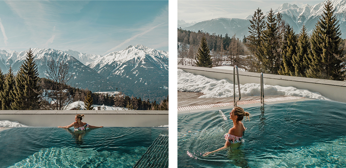 I really enjoyed swimming from the indoor pool to the outdoor pool, as well as just spacing out in the huge jacuzzi. The spa area also features saunas, steam baths and a no-bathing suite section. Still, my favorite moments at the Nidum were the afternoons at the edge of the infinity pool, staring at the mountain peaks across the beautiful Inn valley.