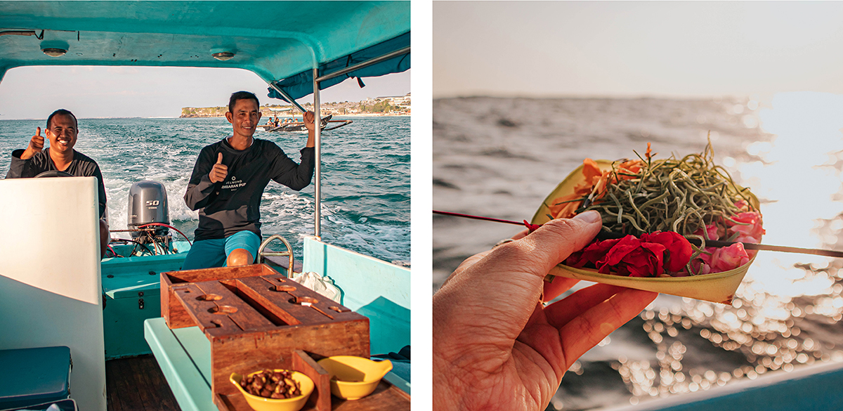 However, the activity that stood out from all the others, for me, was the Sunset Cruise to Uluwatu temple. It was a beautiful 2 hour cruise on a private boat just before sunset along the Uluwatu coast, capped off by a traditional Balinese offering while we floated in the ocean, just off the Uluwatu Temple! The crew was very friendly and full of enthusiasm, so this is an experience I highly recommend.