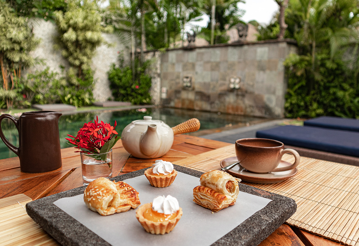 I always enjoy hot coffee or tea in the afternoon when I am in the tropics, whereas I don’t have hot drinks in the afternoon when I’m at home in Europe. So I looked forward every day to the moment when our butler would serve a lovely afternoon tea in our own villa. The selections would change daily but there was always a nice balanced mix of sweet and savory choices.